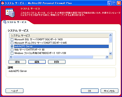 「システムサービス」のサービスポートを外部へ公開する設定を行っています。